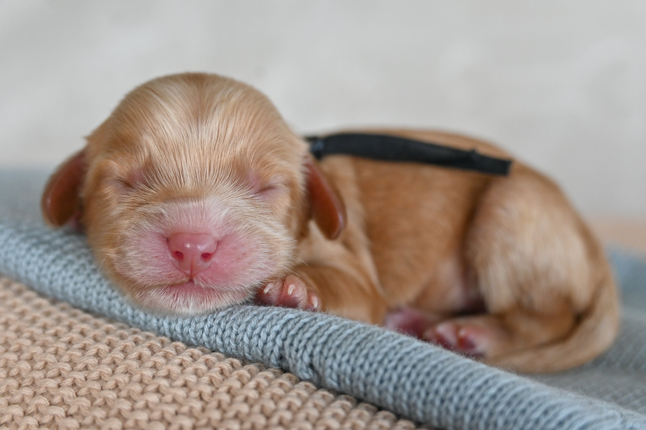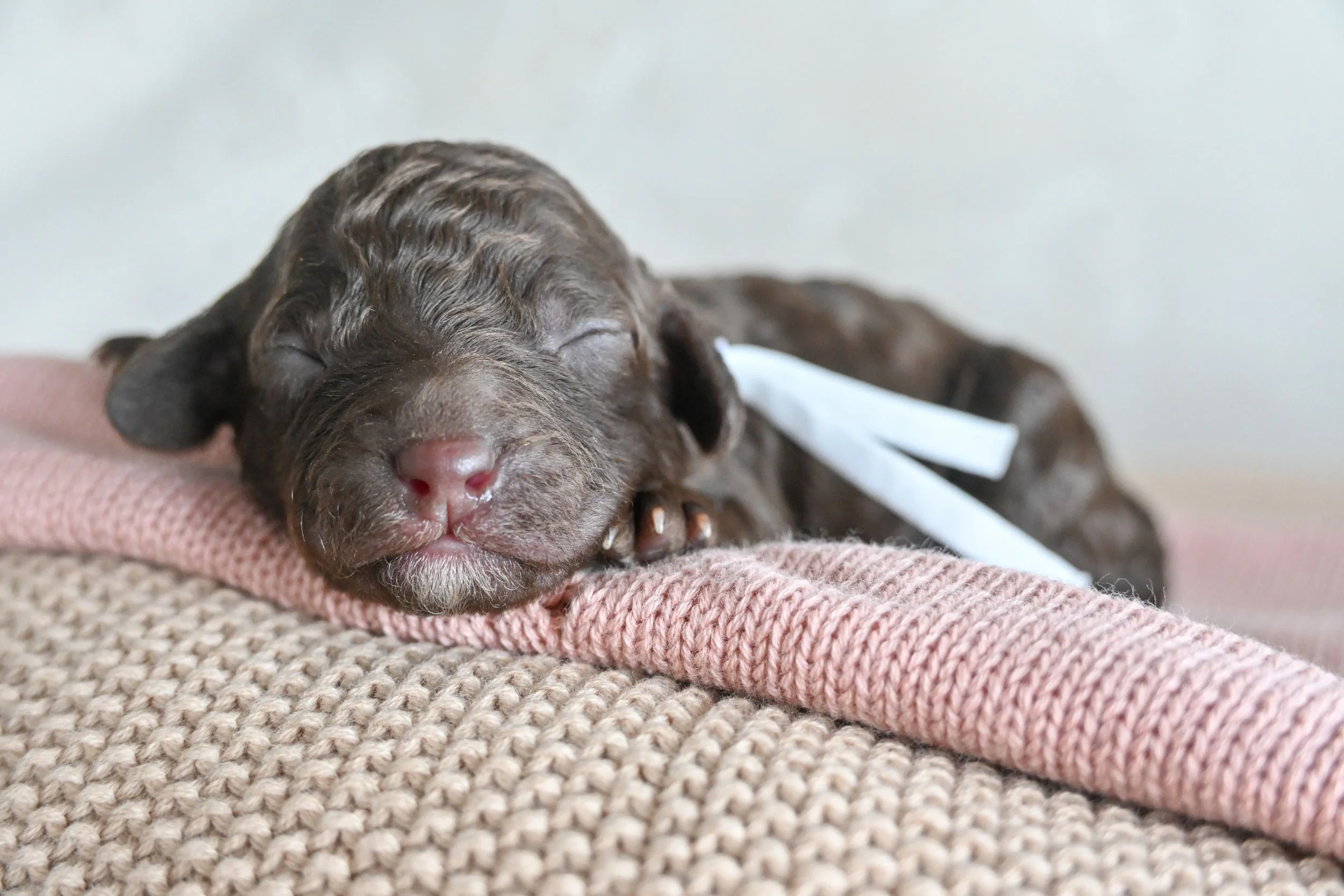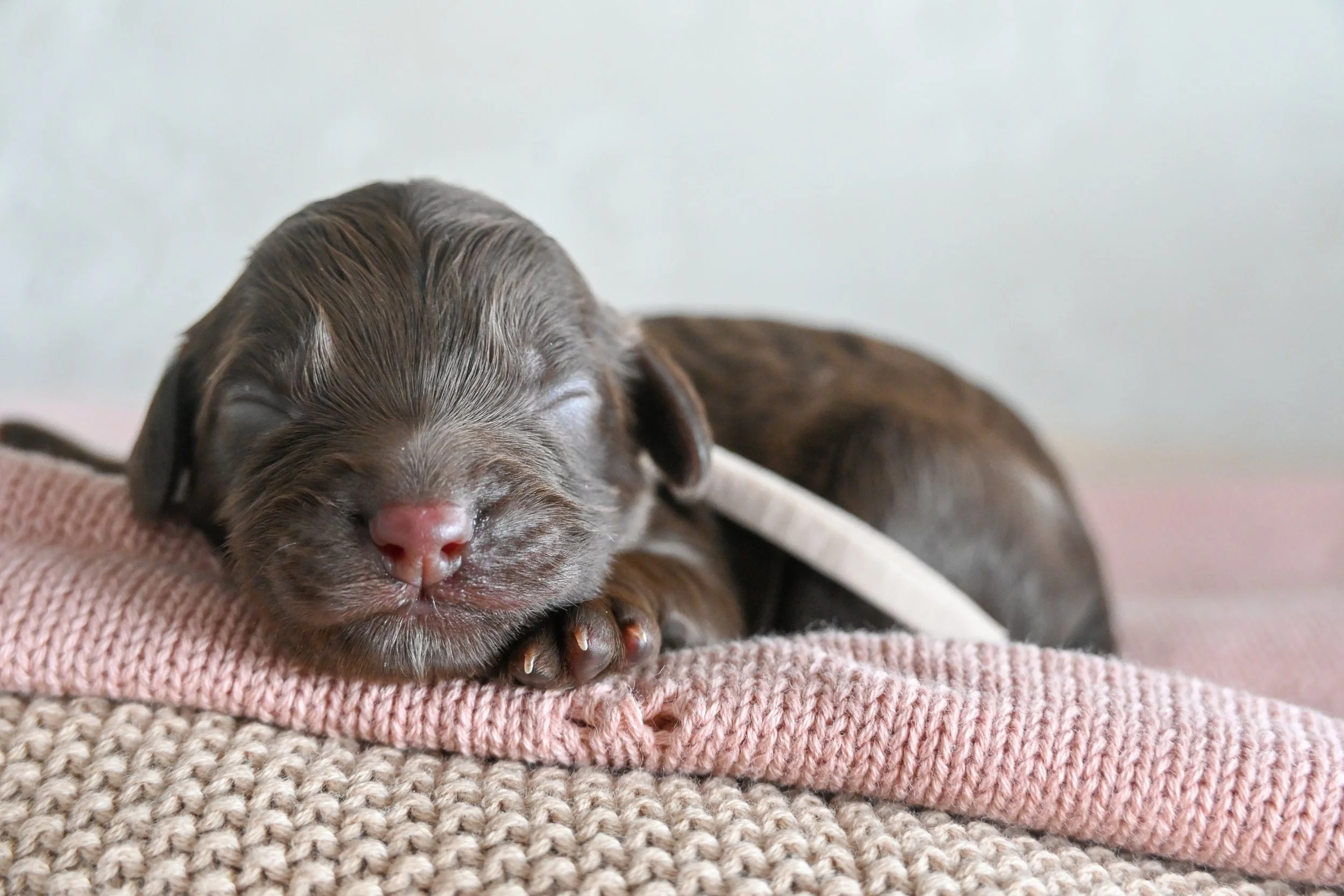 The sweetest little Bambi, gracefully birthed five delightful puppies to Bolton early in December. Three gorgeous Chocolate girls, each with a slightly different coat, and two stunning Red Liver boys make up this beautiful litter. These puppies are expected to grow to between 6–8 kg when fully grown. Born in December, there was no better litter theme than our favourite holiday season. They will be ready to leave for their new families in early February. As this is Bambi’s final litter, we have very limited availability for these precious puppies.