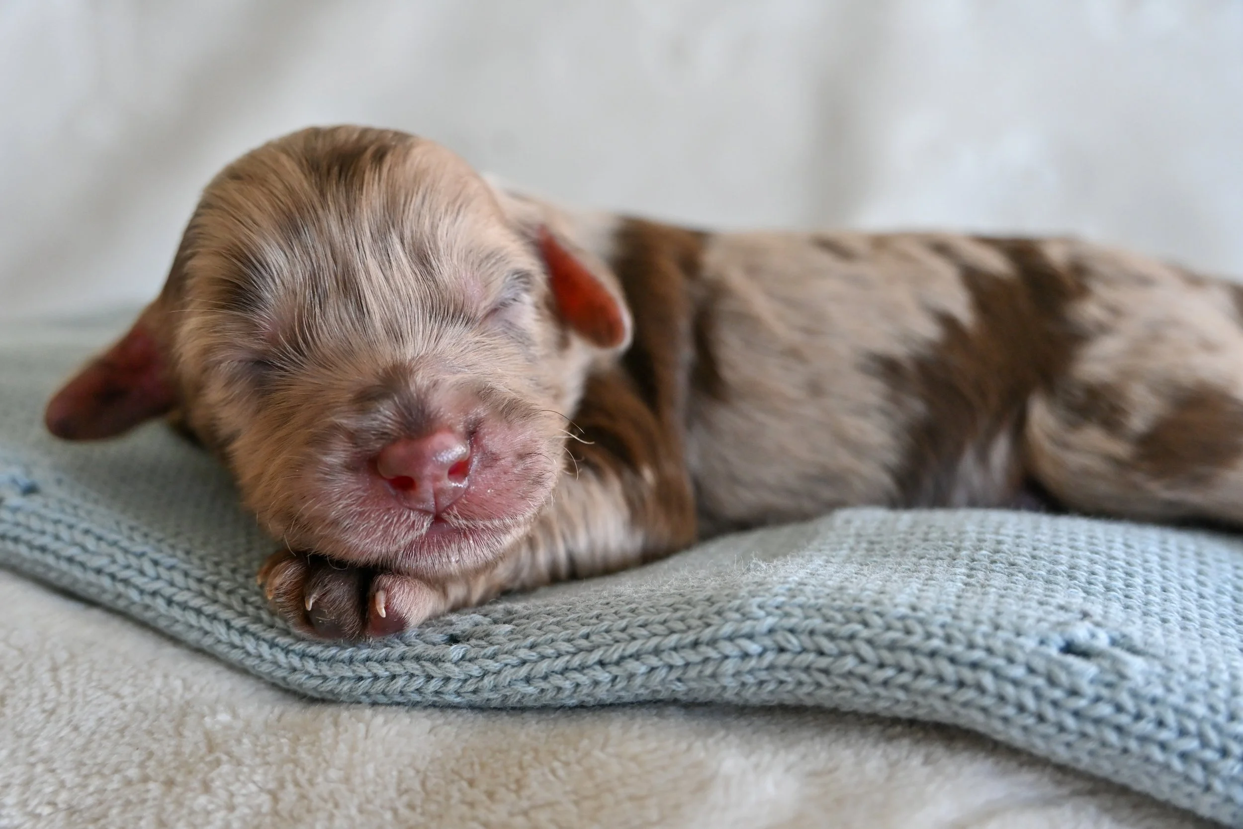 Daisy beautifully delivered her very first litter and our first litter of 2026 early in January. There are 3 lively boys and 2 sweet little girls, showing a lovely variety of coats and colours. Each puppy has its own unique markings, that I am sure will match their charming little personalities. We expect these pups to be around 7–8 kg when fully grown, with a mix of both fleece and wool coats. Daisy’s Blooms will be ready to embark on their next adventures early in March. We currently have two little boys still available for loving homes.