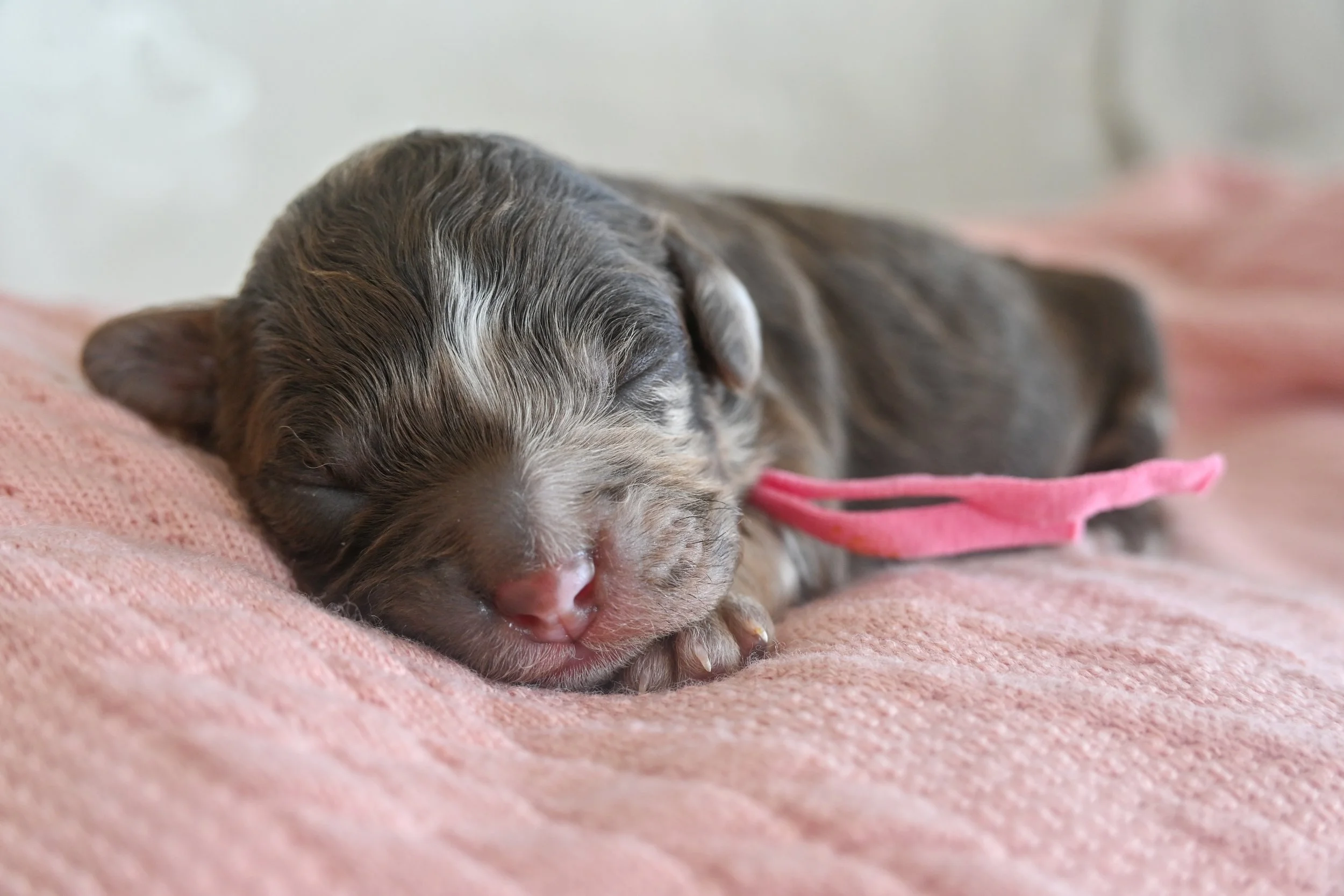 Lucille’s sweetest babies just couldn’t wait to enter the world! With no immediate signs of labour, we were off to the vet for her last health checks and puppy count! Just as we were prepping Lucille for her x-ray we turned around to her first baby being born! Lucille quietly surprised us all by birthing her beautiful babies at her appointment! I couldn’t think of a better litter theme than “Team Prestige”, named after our wonderful veterinary team. We have limited availability in Lucille’s litter, with only 1 girl still available. Team Prestige will be between 5-7kgs fully grown, with wool and fleece coats. These precious babies will be ready to embark on their next journey early-mid December. Please get in touch below for further information.